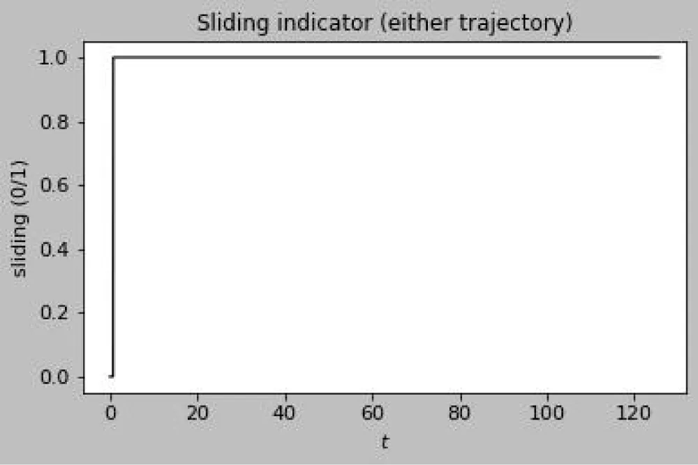 Figure 6: Sliding indicator (1 when either trajectory satisfies v = 0 and