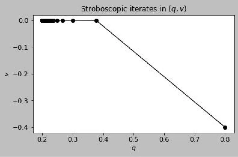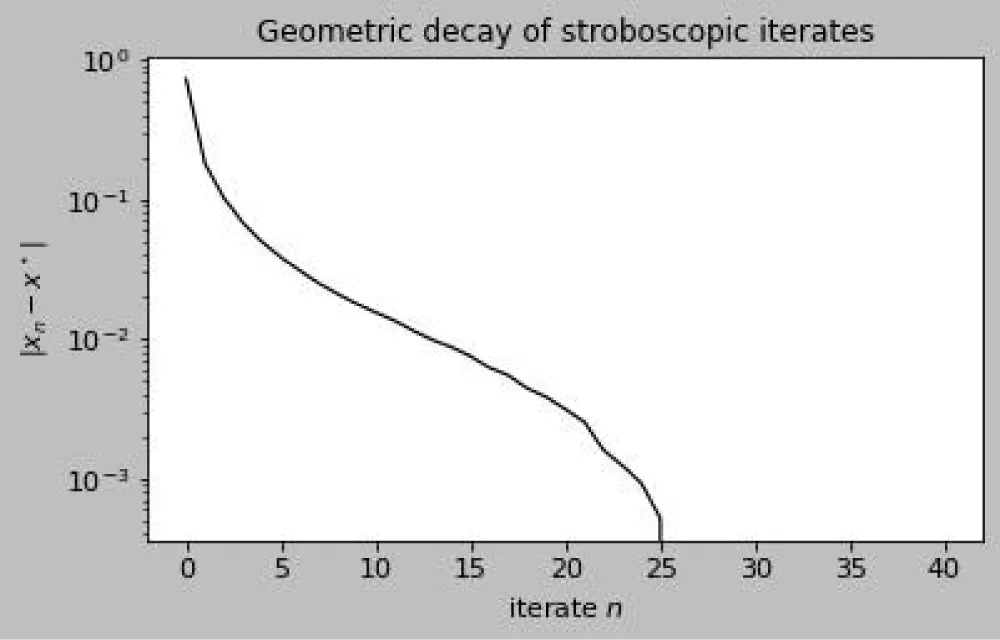 Figure 8: Contraction of the stroboscopic map. Iterates