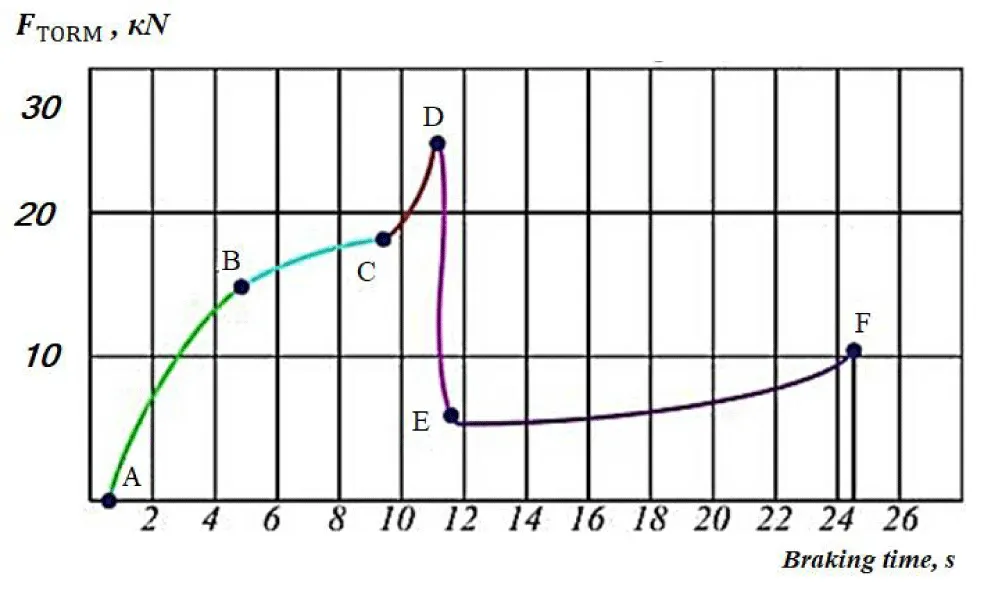 Figure 2 shows the curve of the change in braking force FTORM during wheelset lockup.