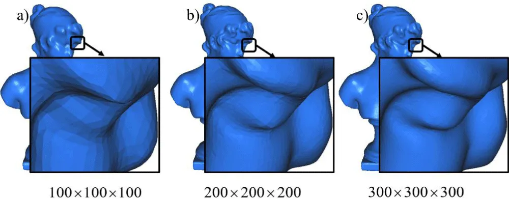 Using fine grids allows us to capture details on the surface (Figures 10-12).