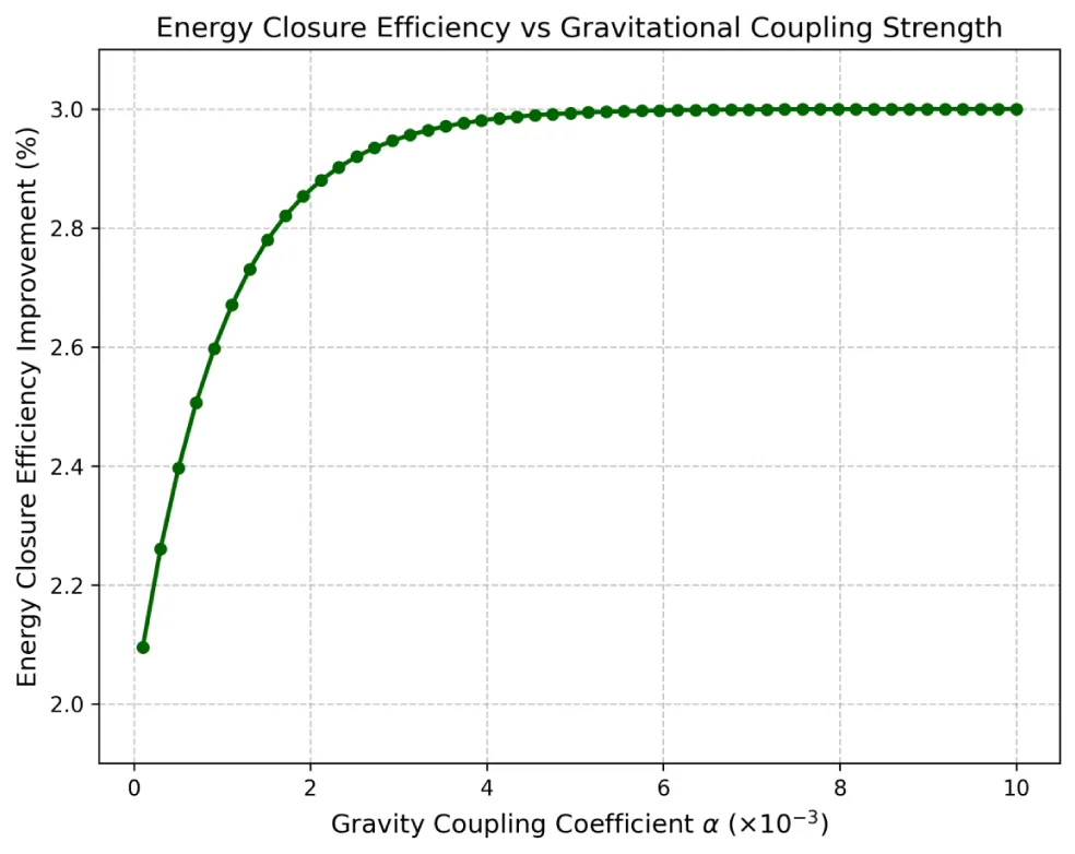 Figure 13: The energy closure efficiency improvement curve under different gravitational coupling strengths is shown in the simulation results.