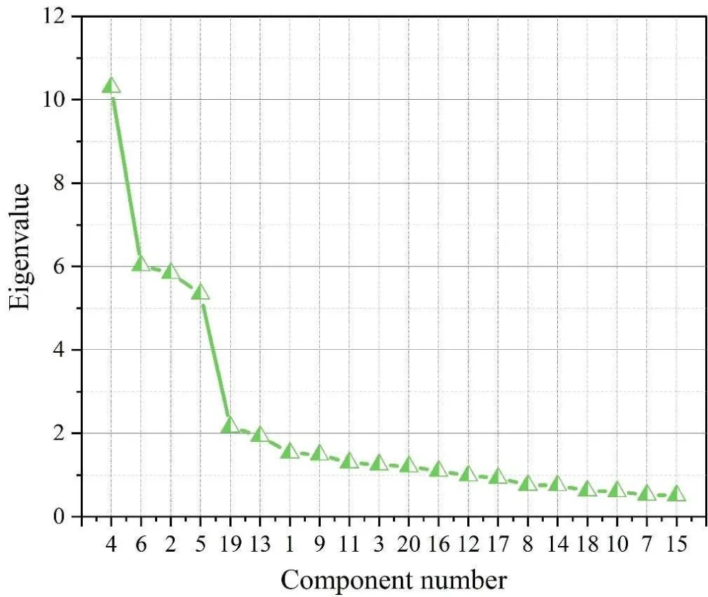 Step 3: Eigenvalues and corresponding eigenvectors were extracted from the correlation matrix, with eigenvalues representing the variance explained by each potential component.